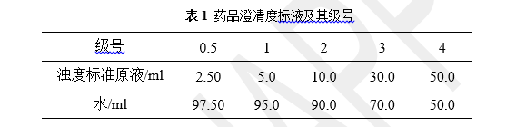 年國家藥典委員會(原名衛(wèi)生部藥典委員會成立于1950年)根據(jù)《中華人民共和國藥品管理法》的規(guī)定,負(fù)責(zé)組織編纂《中華人民共和國藥典》及制定、修訂國家藥品標(biāo)準(zhǔn),是法定的國家藥品標(biāo)準(zhǔn),由國家食品藥品監(jiān)督管理部門批準(zhǔn)頒布實(shí)施。新藥典中發(fā)布了對于藥品澄清度的檢測要求,它將澄清度由清到濁規(guī)定了0.5-4(見表1)5個(gè)澄清度級號。
