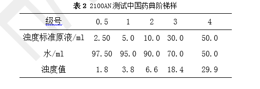 a)利用濁度儀制作的工作曲線來標(biāo)定藥典澄清度標(biāo)液,標(biāo)定結(jié)果如下:
